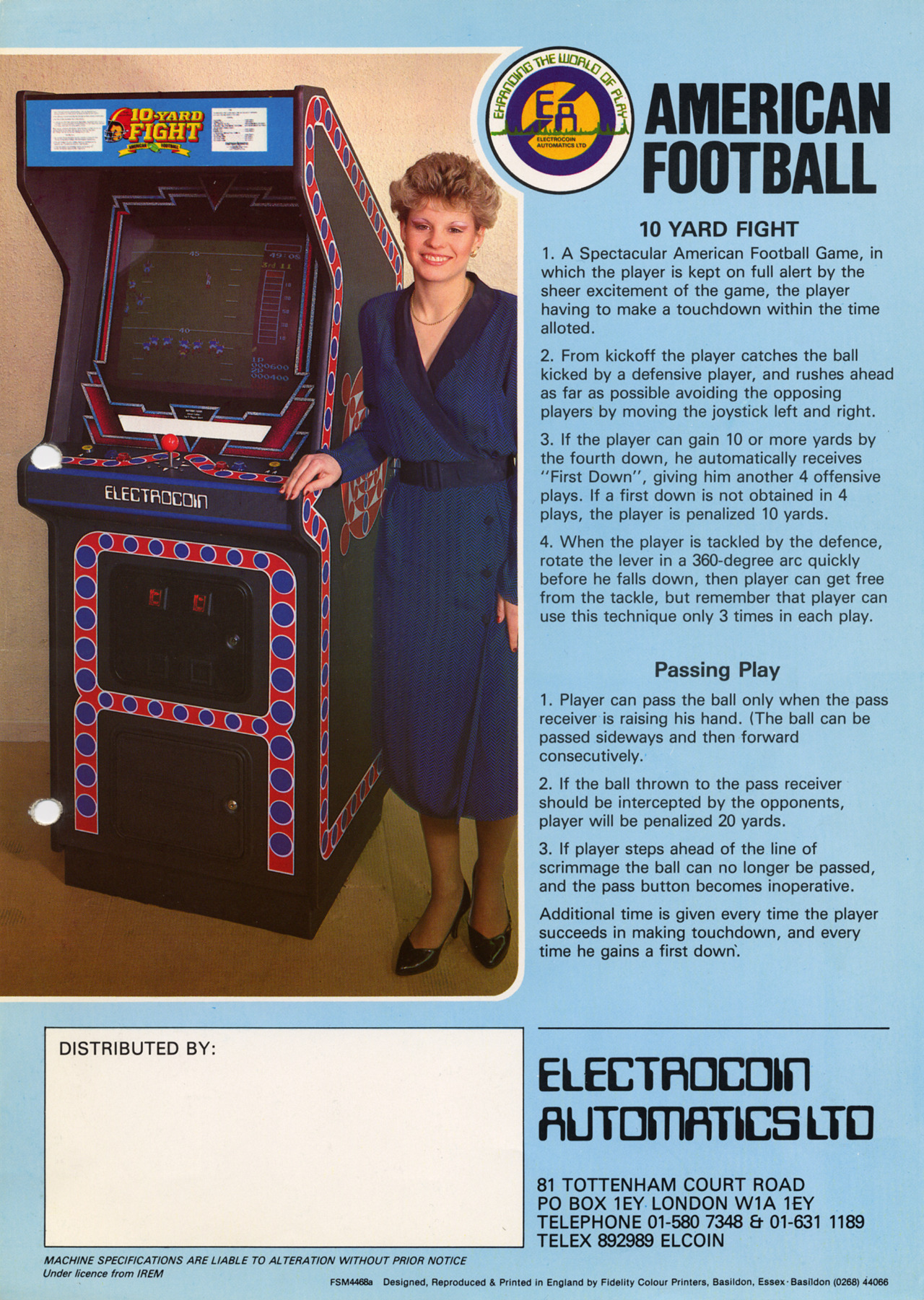 10 Yard Fight UncategorizedFebruary 2021January 2024 Dan Hower Year Released 1983 Developed by Irem Published by Electrocoin More Information 1 Page Flyer Printed Text English Paper Size A4 Date Posted Feb 20, 2021 Views 0