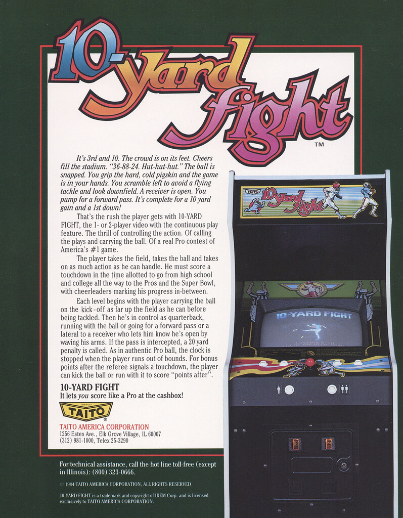 10 Yard Fight UncategorizedFebruary 2021May 2024 Dan Hower Year Released 1983 Developed by Irem Published by Taito More Information Printed Text English Paper Size US Letter Date Posted Feb 20, 2021 Views 1