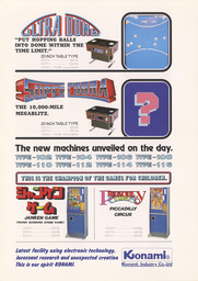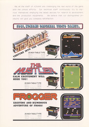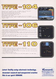Shows Frogger, Scramble, Strategy X, Super Cobra, Tactician, The Hustler, Turtles, Type 102, Type 104, Type 106 and Type 110 and Ultra Dome