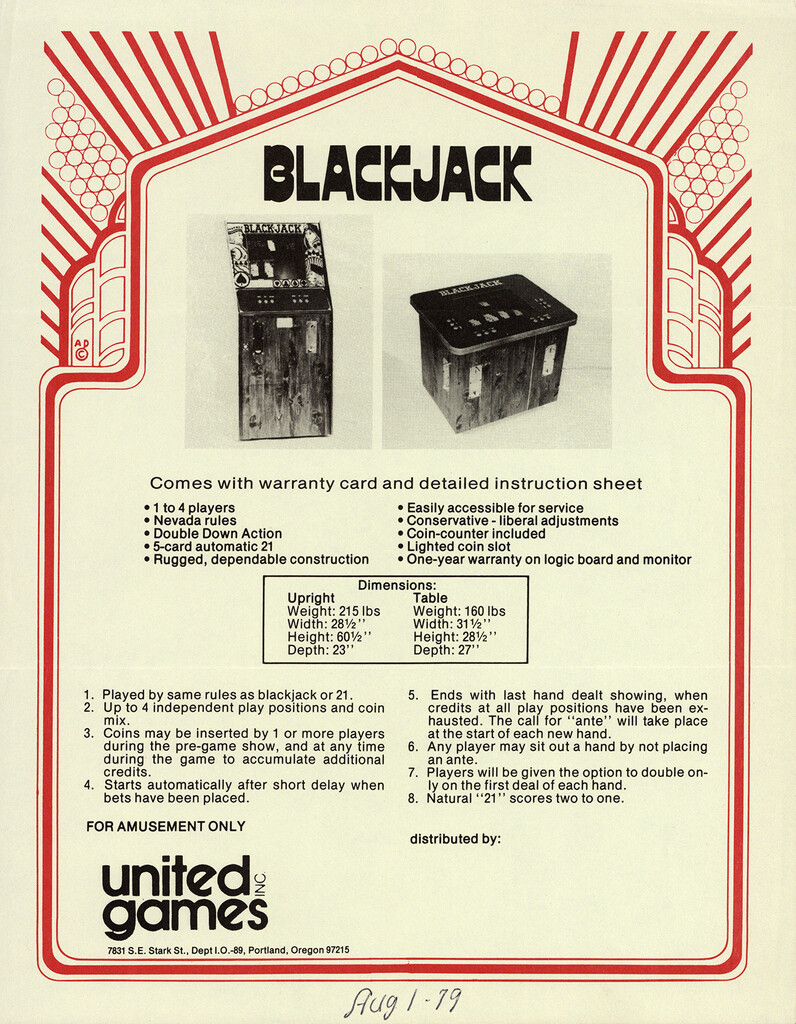 Black Jack UncategorizedJuly 2021July 2023 Dan Hower Year Released 1979 Developed by United Games Published by United Games More Information 1 Page Flyer Printed Text English Paper Size US Letter Date Posted Jul 18, 2021 Views 0