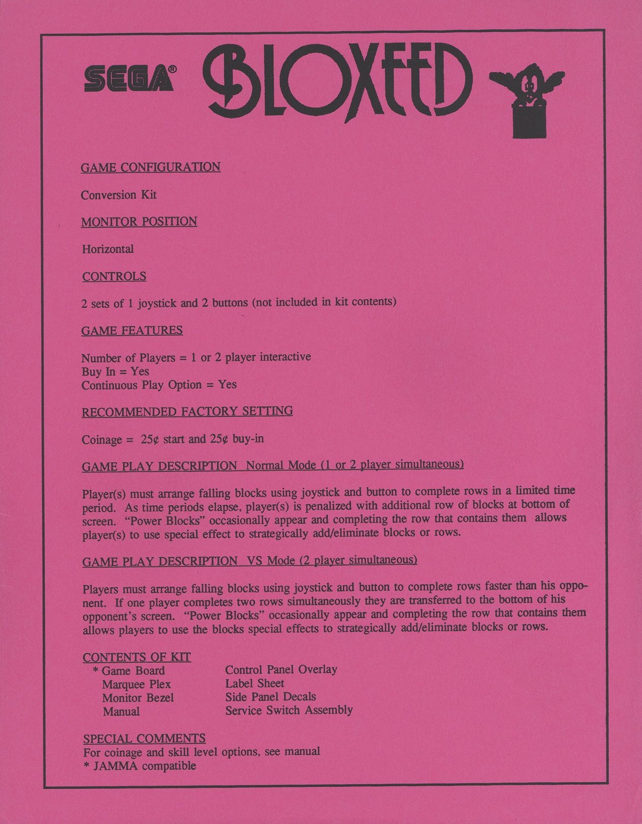 Bloxeed UncategorizedJuly 2024July 2024 Dan Hower Year Released 1990 Developed by Sega Published by Sega More Information 1 Page Flyer Printed Text English Paper Size US Letter Date Posted Jul 17, 2024 Views 1