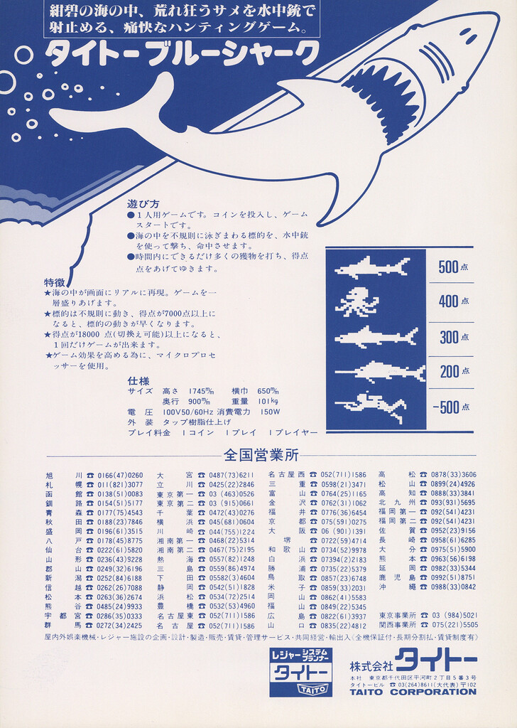 Blue Shark UncategorizedJanuary 2025January 2025 Dan Hower Year Released 1978 Developed by Midway Published by Taito More Information ~ Printed Text Japanese Paper Size A4 Date Posted Jan 4, 2025 Views 11