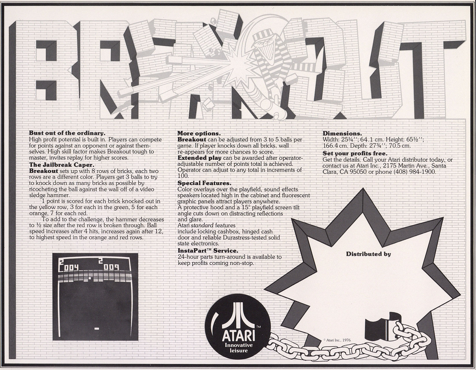 Breakout UncategorizedFebruary 2021July 2023 Dan Hower Year Released 1976 Developed by Atari Published by Atari More Information Printed Text English Paper Size US Letter Date Posted Feb 20, 2021 Views 3