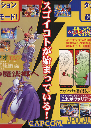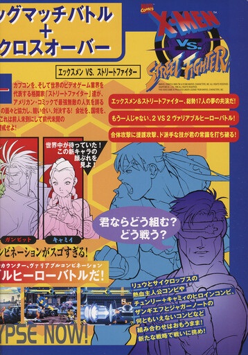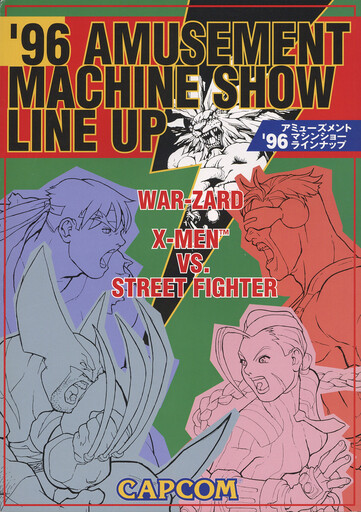 Capcom 1996 Amusement Machine Show Line Up UncategorizedFebruary 2023July 2023 Dan Hower Year Released 1996 Developed by Capcom Published by Capcom More Information Video Games Catalog Shows Street Fighter EX, War-Zard and X-Men Vs. Street Fighter. Printed Text Japanese Paper Size A4 Date Posted Feb 6, 2023 Views 4