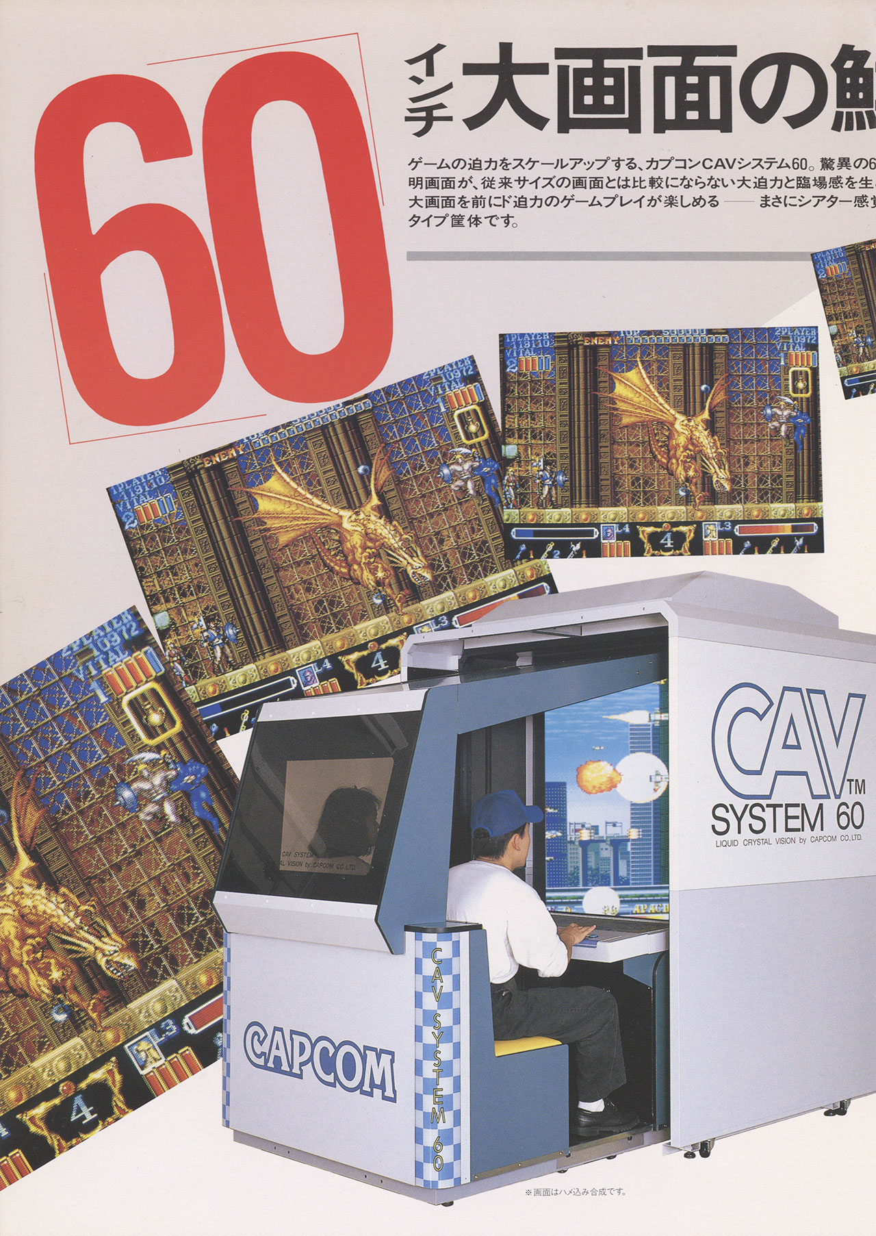 Capcom CAV System 60 Cabinet UncategorizedJune 2024July 2024 Dan Hower Year Released 1990-1991 Developed by Capcom Published by Capcom More Information Shows U.S.Navy (also known as US Navy), Magic Sword and Street Fighter II Printed Text Japanese Paper Size A4 Date Posted Jun 15, 2024 Views 2