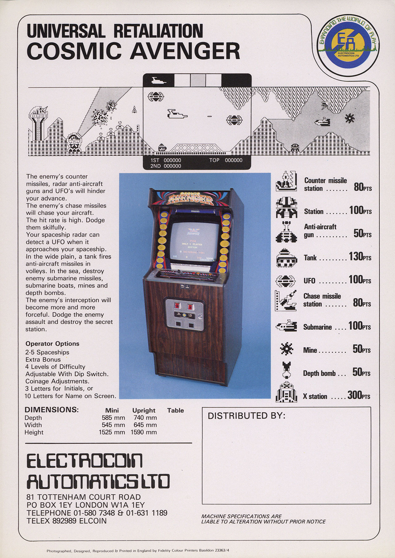 Cosmic Avenger UncategorizedApril 2023July 2023 Dan Hower Year Released 1981 Developed by Universal Published by Electrocoin More Information Cosmic Series Printed Text English Paper Size A4 Date Posted Apr 8, 2023 Views 0