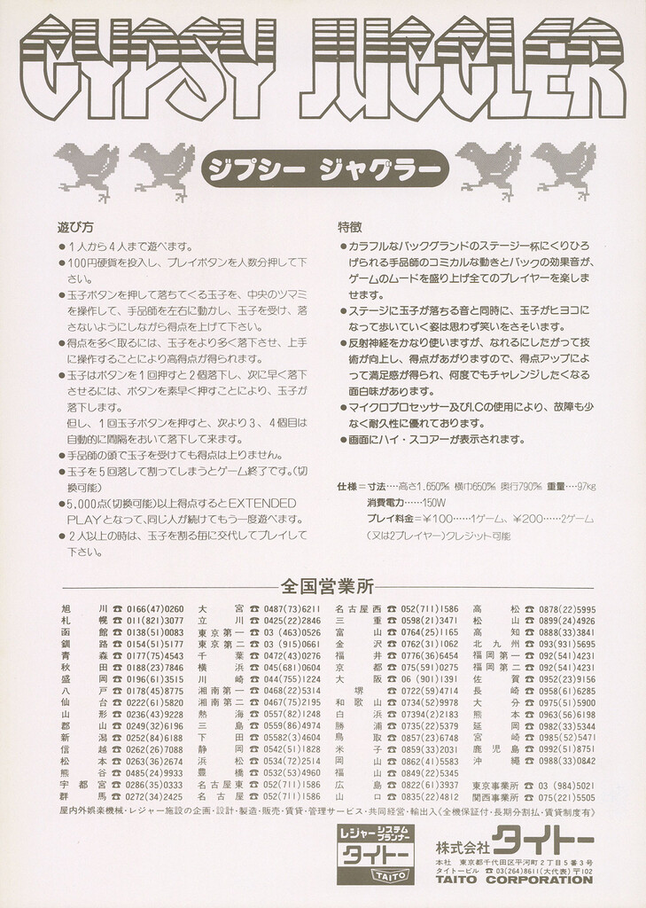 Gypsy Juggler UncategorizedOctober 2023October 2023 Dan Hower Year Released 1978 Developed by Meadows Games Published by Taito More Information Printed Text Japanese Paper Size A4 Date Posted Oct 20, 2023 Views 1
