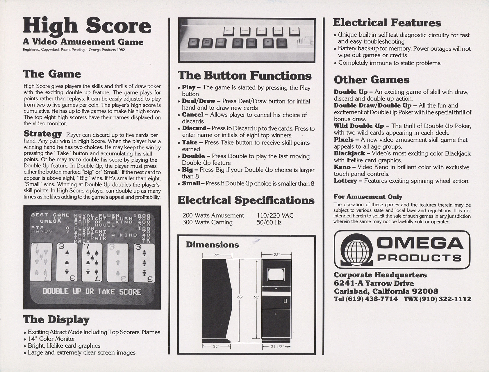 High Score UncategorizedMarch 2025March 2025 Dan Hower Year Released 1982 Developed by Omega Products Published by Omega Products More Information ~ Printed Text English Paper Size US Letter Date Posted Mar 2, 2025 Views 5