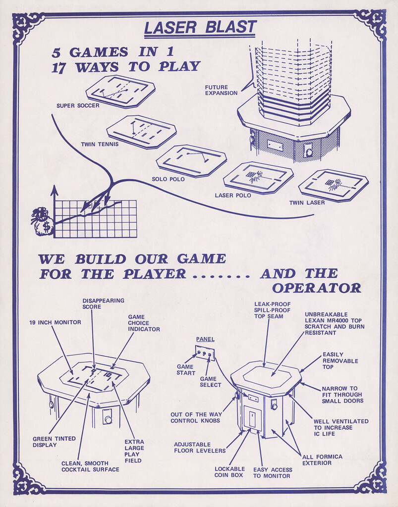 - Shows Laser Polo, Solo Polo, Super Soccer, Twin Laser and Twin Tennis.