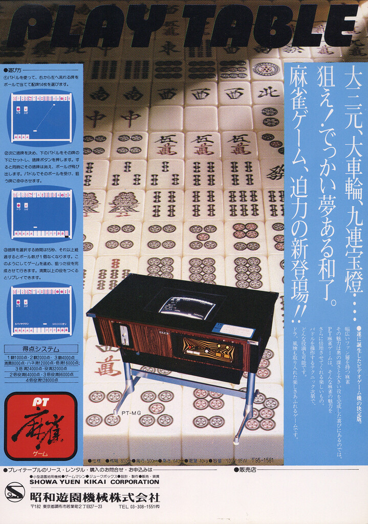 Mahjong UncategorizedApril 2023July 2023 Dan Hower Year Released 1978 Developed by Irem Published by Irem More Information 1 Page Flyer Play Table Series. Printed Text Japanese Paper Size A4 Date Posted Apr 8, 2023 Views 1