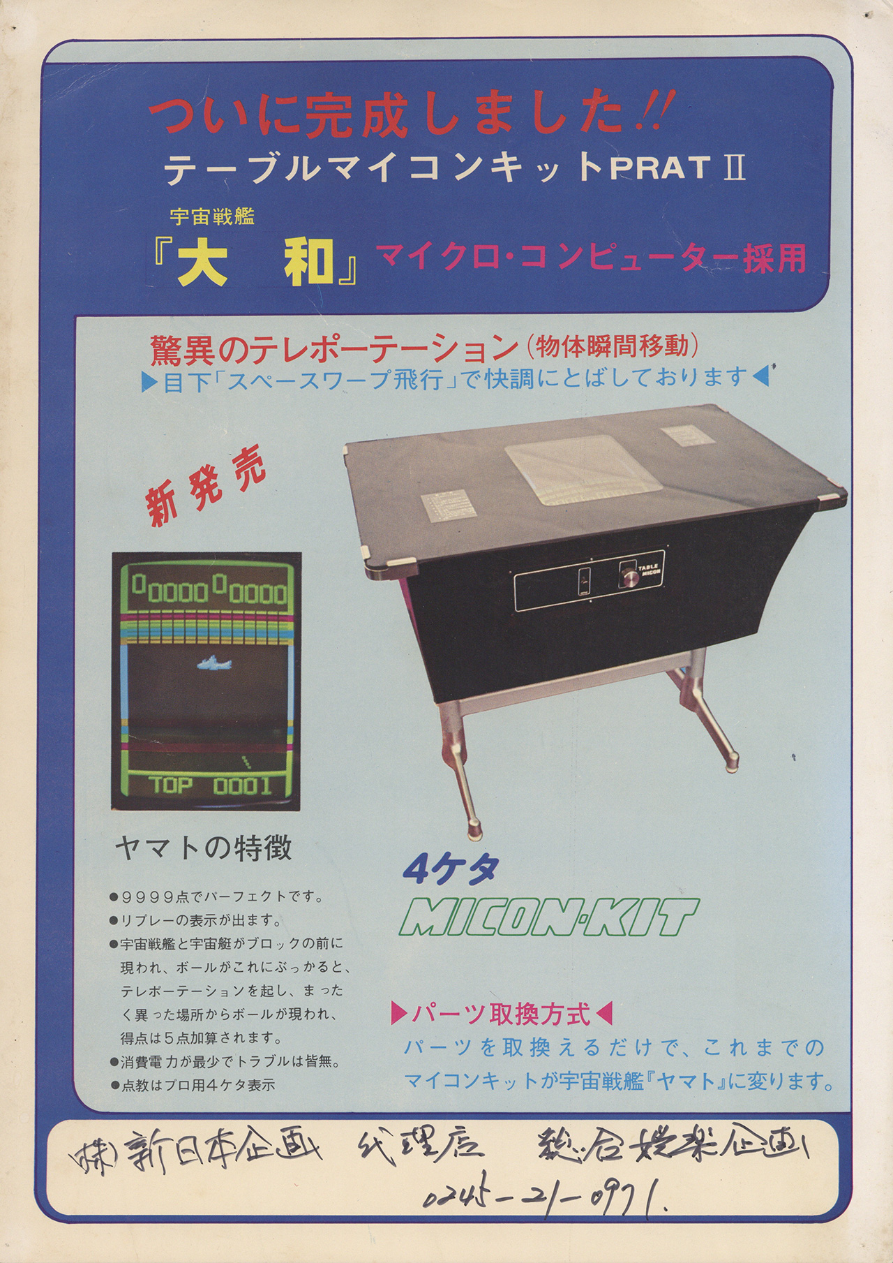 Micon Kit Part II: Uchuu Senkan Yamato UncategorizedOctober 2024October 2024 Dan Hower Year Released 1978 Developed by SNK Published by SNK More Information 1 Page Flyer Printed Text Japanese Paper Size A4 Date Posted Oct 7, 2024 Views 4
