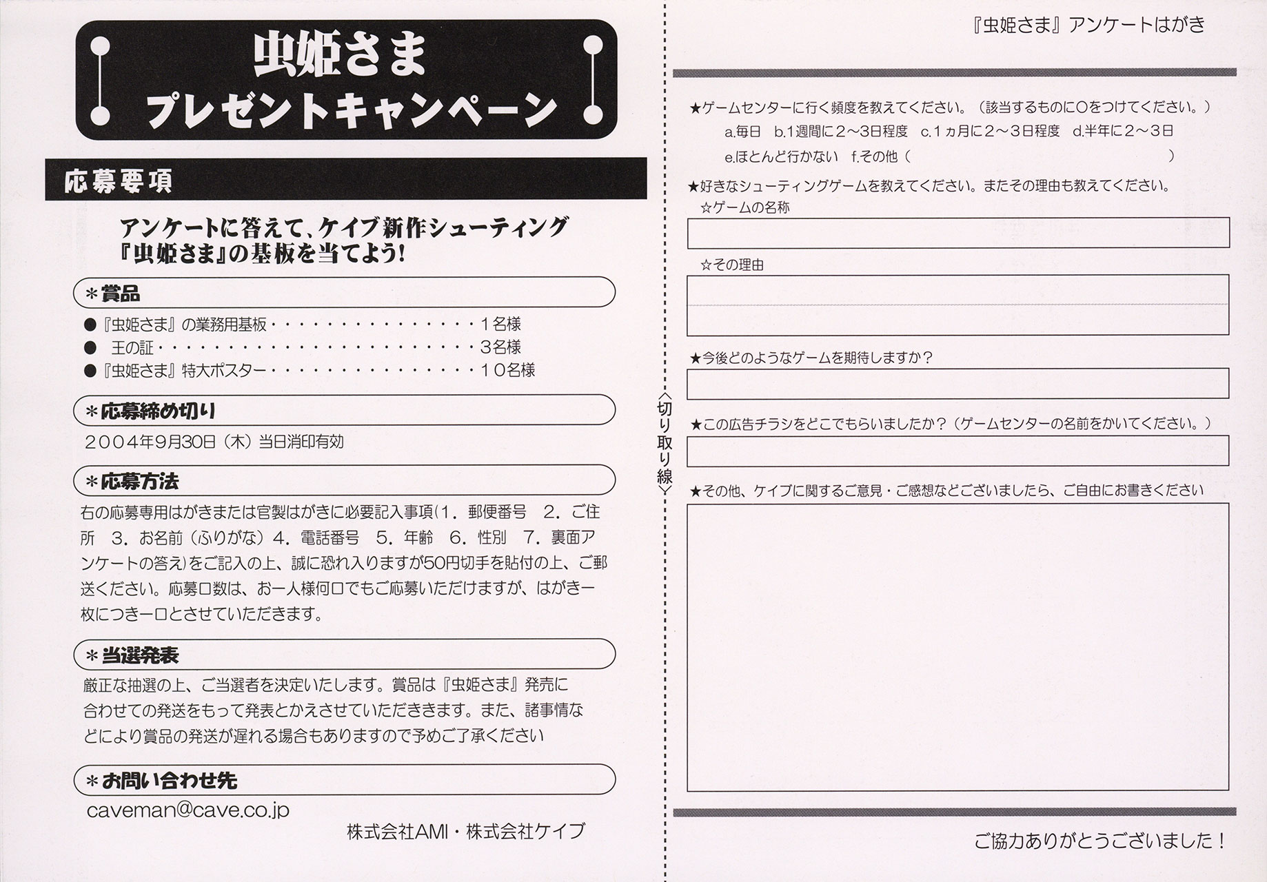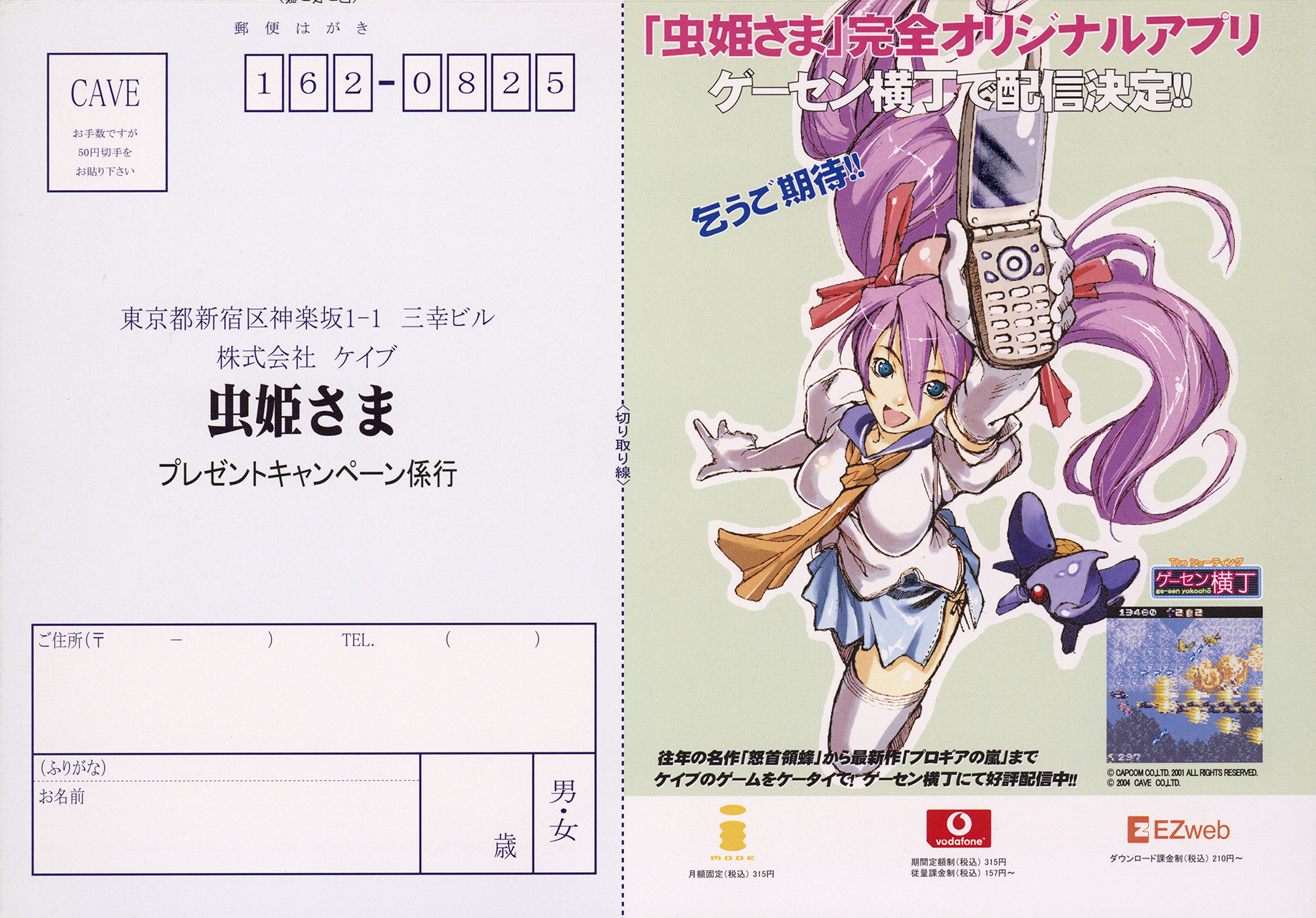 Mushihimesama UncategorizedSeptember 2021July 2023 Dan Hower Year Released 2004 Developed by Cave Interactive Published by AMI More Information Printed Text Japanese Paper Size Small Format Date Posted Sep 1, 2021 Views 1
