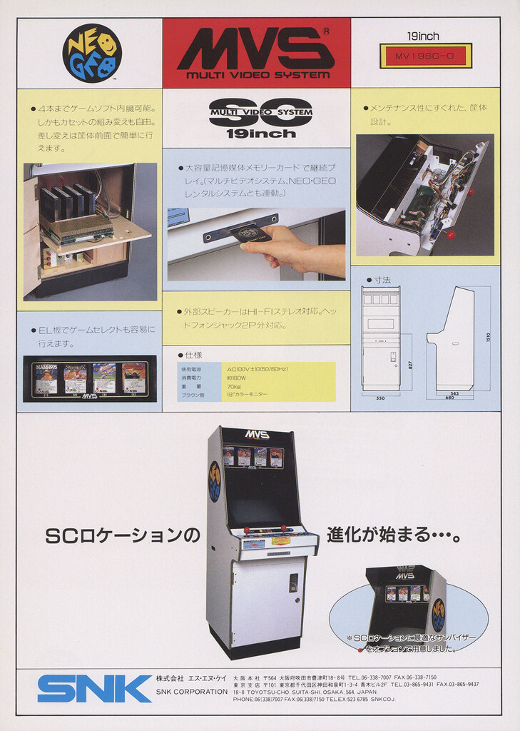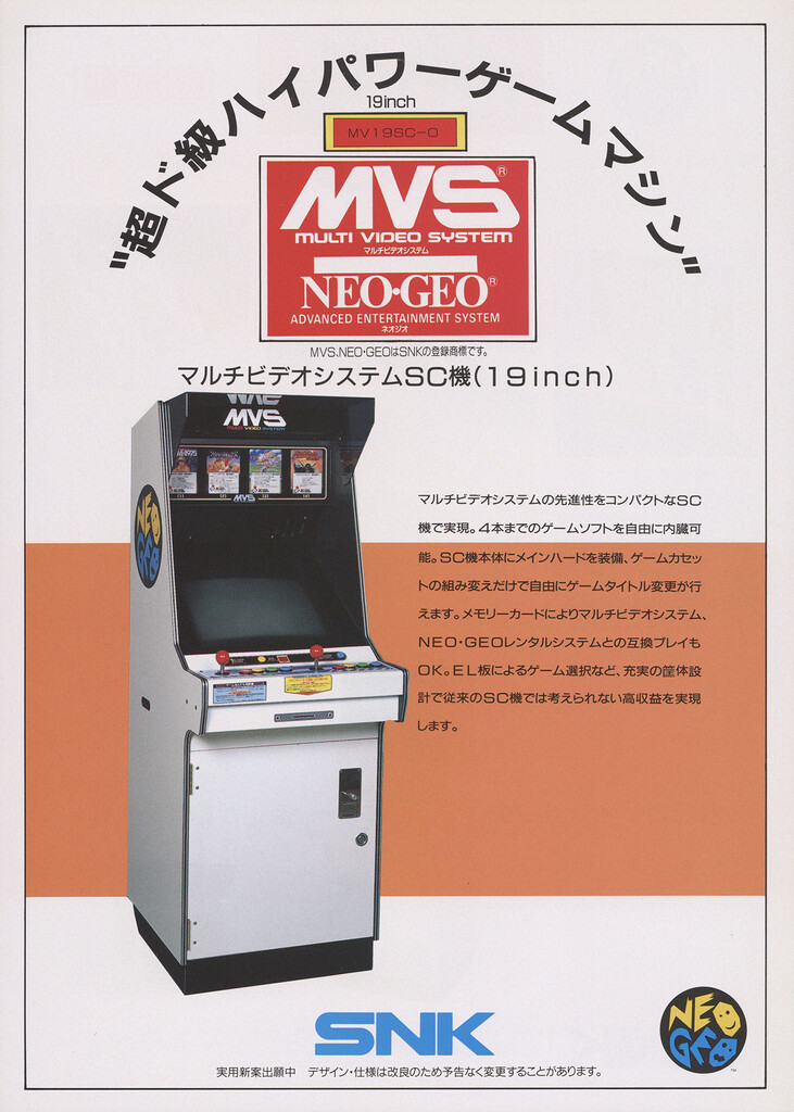 Neo Geo MVS Cabinet MV19SC-0 UncategorizedJune 2024June 2024 Dan Hower Year Released 1990 Developed by SNK Published by SNK More Information Shows Baseball Stars Professional, Magician Lord, Nam-1975 and Top Players Golf Printed Text Japanese Paper Size A4 Date Posted Jun 15, 2024 Views 0