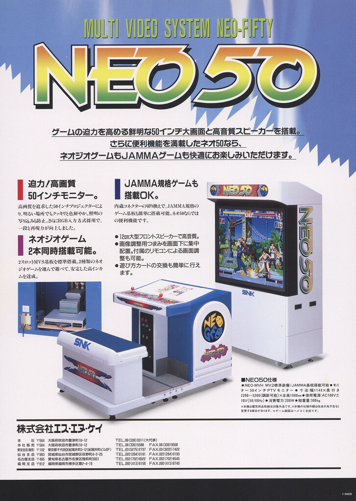 Neo Geo MVS Neo-50 2Slot Type Cabinet UncategorizedJune 2024June 2024 Dan Hower Year Released 1994 Developed by SNK Published by SNK More Information Shows The King of Fighters Printed Text Japanese Paper Size A4 Date Posted Jun 15, 2024 Views 2