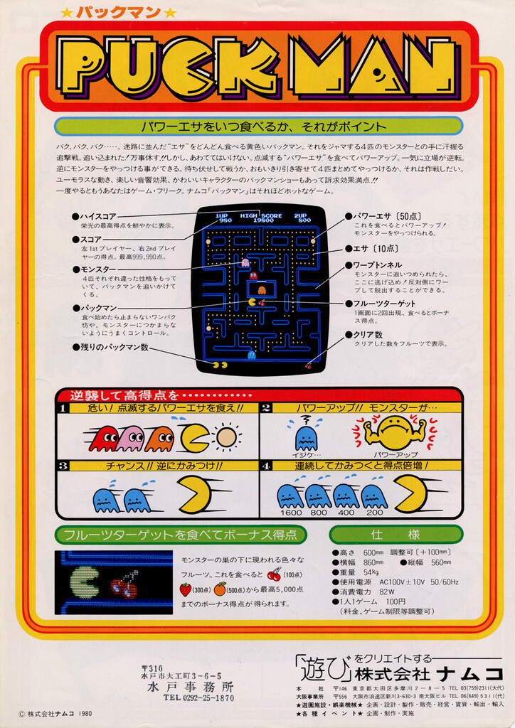 Puck Man UncategorizedFebruary 2021July 2024 Dan Hower Year Released 1980 Developed by Namco Published by Namco More Information Also known as Pac-Man Also known as Puck-Man Also known as PuckMan Printed Text Japanese Paper Size A4 Date Posted Feb 20, 2021 Views 9