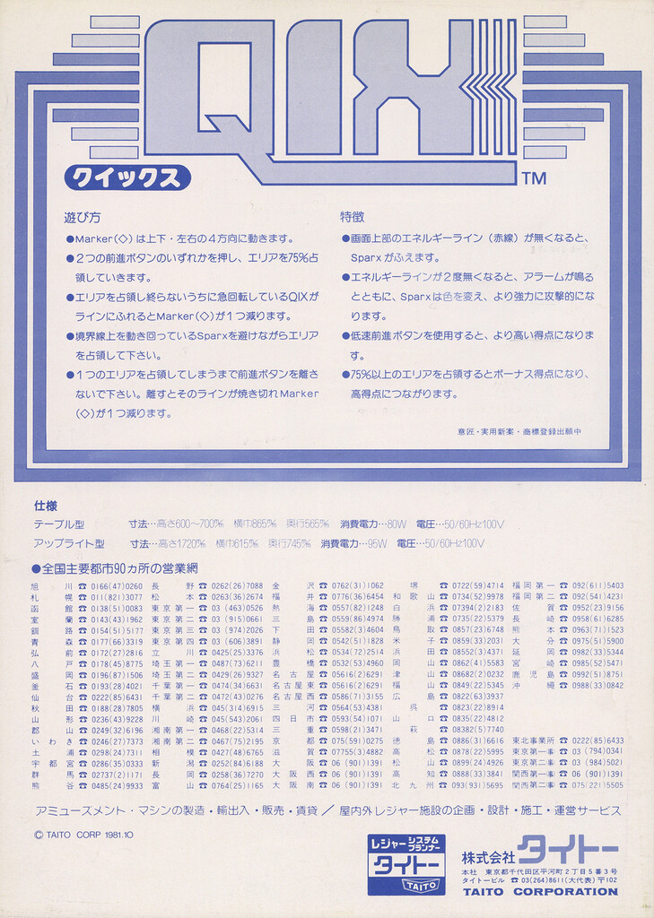 Qix UncategorizedOctober 2024October 2024 Dan Hower Year Released 1981 Developed by Taito Published by Taito More Information ~ Printed Text Japanese Paper Size A4 Date Posted Oct 7, 2024 Views 14