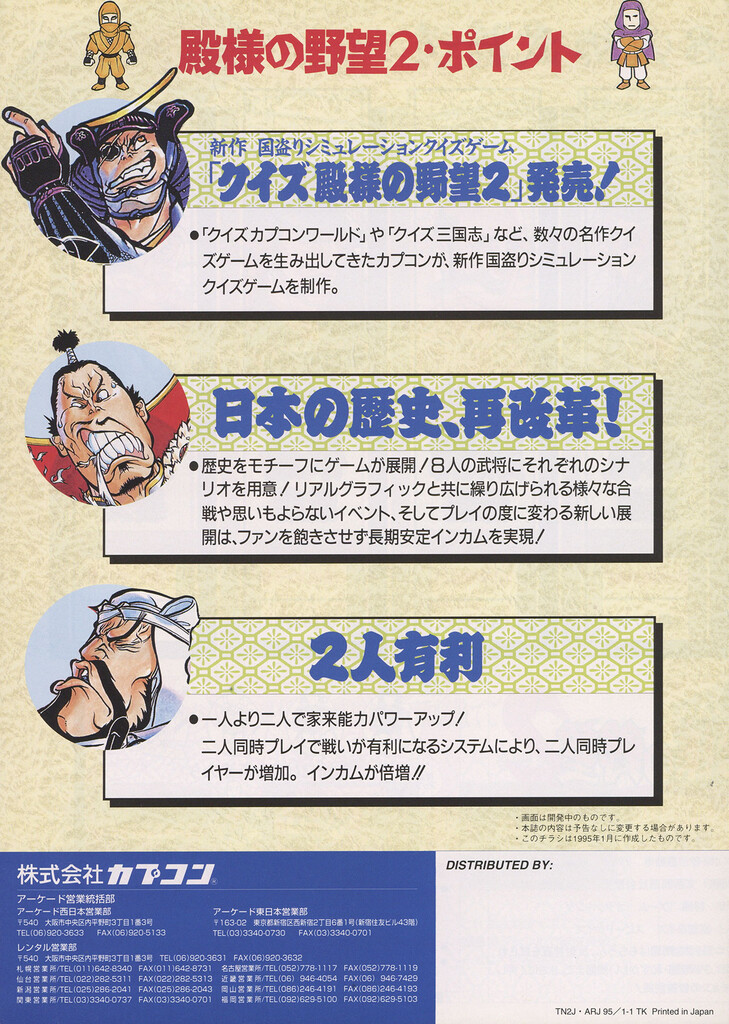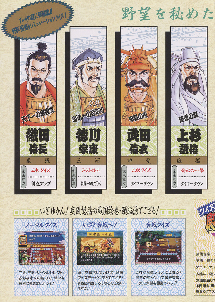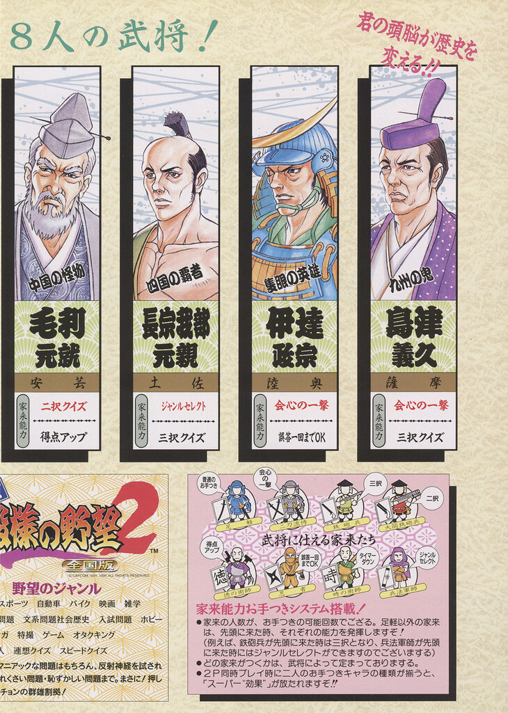 Quiz Tonosama no Yabou 2: Zenkoku-ban UncategorizedNovember 2023November 2023 Dan Hower Year Released 1995 Developed by Capcom Published by Capcom More Information Printed Text Japanese Paper Size A4 Date Posted Nov 30, 2023 Views 1