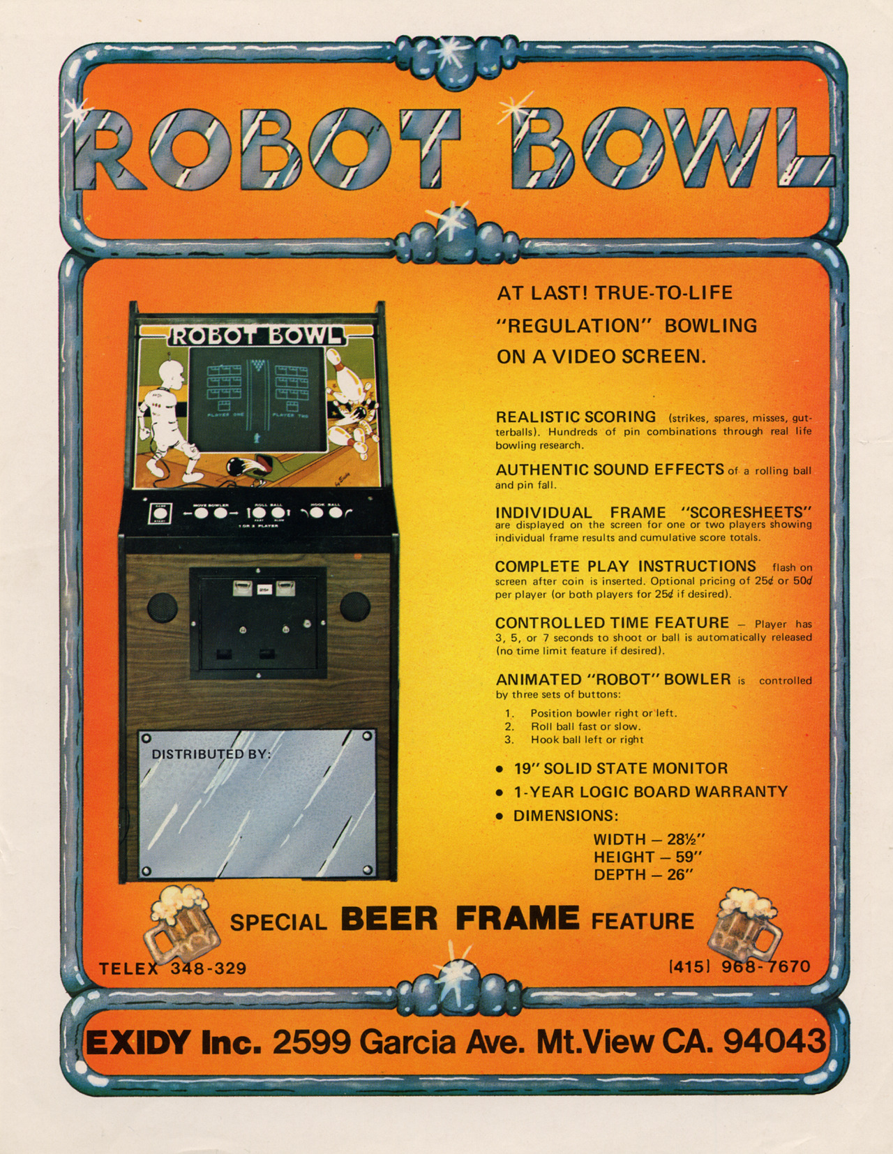 Robot Bowl UncategorizedFebruary 2021March 2021 Dan Hower Year Released 1977 Developed by Exidy Published by Exidy More Information 1 Page Flyer Printed Text English Paper Size US Letter Date Posted Feb 20, 2021 Views 0