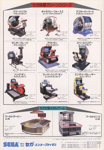 - Shows After Burner II, Enduro Racer, Galaxy Force II, Hang-On, Outrun, Power Drift, Space Harrier, Super Hang-On, and Thunder Blade
