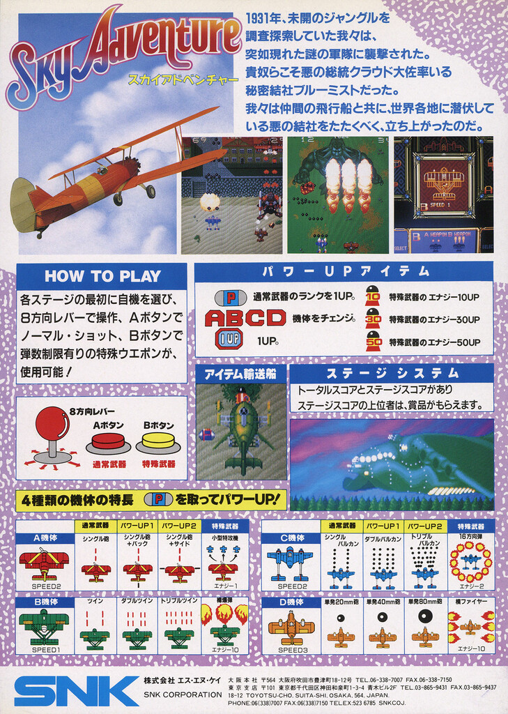 Sky Adventure UncategorizedMay 2022July 2024 Dan Hower Year Released 1989 Developed by Alpha Denshi Published by SNK More Information Printed Text Japanese Paper Size A4 Date Posted May 1, 2022 Views 0