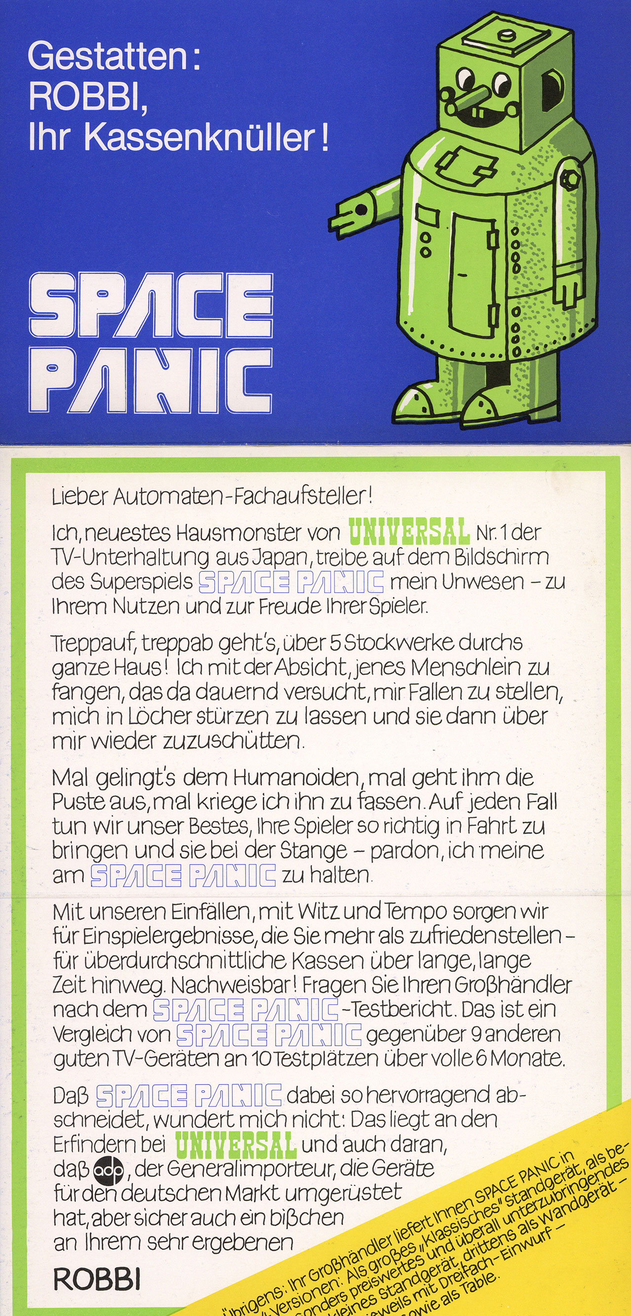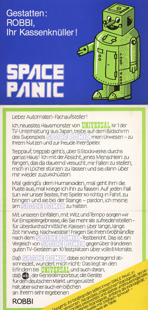 Space Panic UncategorizedJuly 2021July 2024 Dan Hower Year Released 1980 Developed by Universal Published by ADP Automaten More Information Cosmic Series Printed Text German Paper Size A4 Date Posted Jul 24, 2021 Views 0