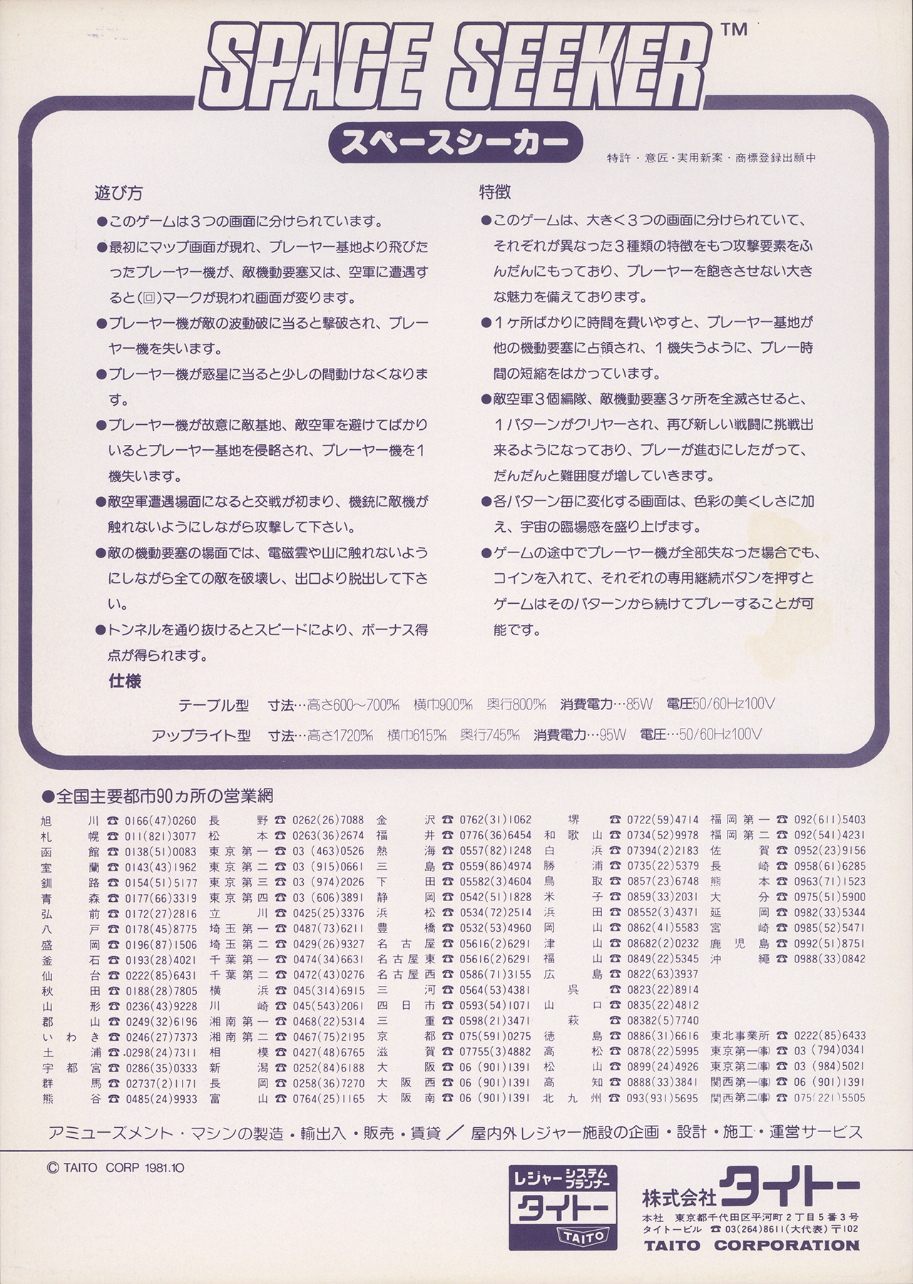 Space Seeker UncategorizedFebruary 2025February 2025 Dan Hower Year Released 1981 Developed by Taito Published by Taito More Information ~ Printed Text Japanese Paper Size A4 Date Posted Feb 2, 2025 Views 10