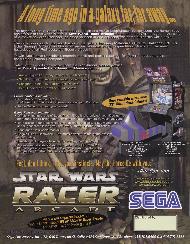 Star Wars Racer Arcade UncategorizedSeptember 2021July 2023 Dan Hower Year Released 2000 Developed by Sega Published by Sega More Information Printed Text English Paper Size US Letter Date Posted Sep 1, 2021 Views 0
