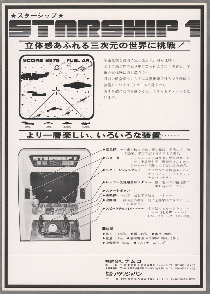 Starship 1 UncategorizedOctober 2024October 2024 Dan Hower Year Released 1977 Developed by Atari Published by Namco More Information ~ Printed Text Japanese Paper Size A4 Date Posted Oct 7, 2024 Views 6