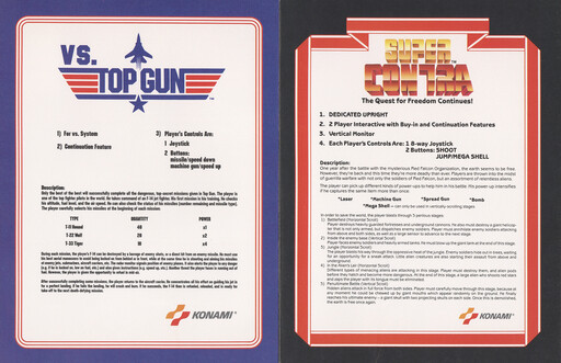 Super Contra, Vs. Top Gun, and Haunted Castle UncategorizedFebruary 2025February 2025 Dan Hower Year Released 1987-1988 Developed by Konami Published by Konami More Information ~ Printed Text English Paper Size Small Format Date Posted Feb 2, 2025 Views 6