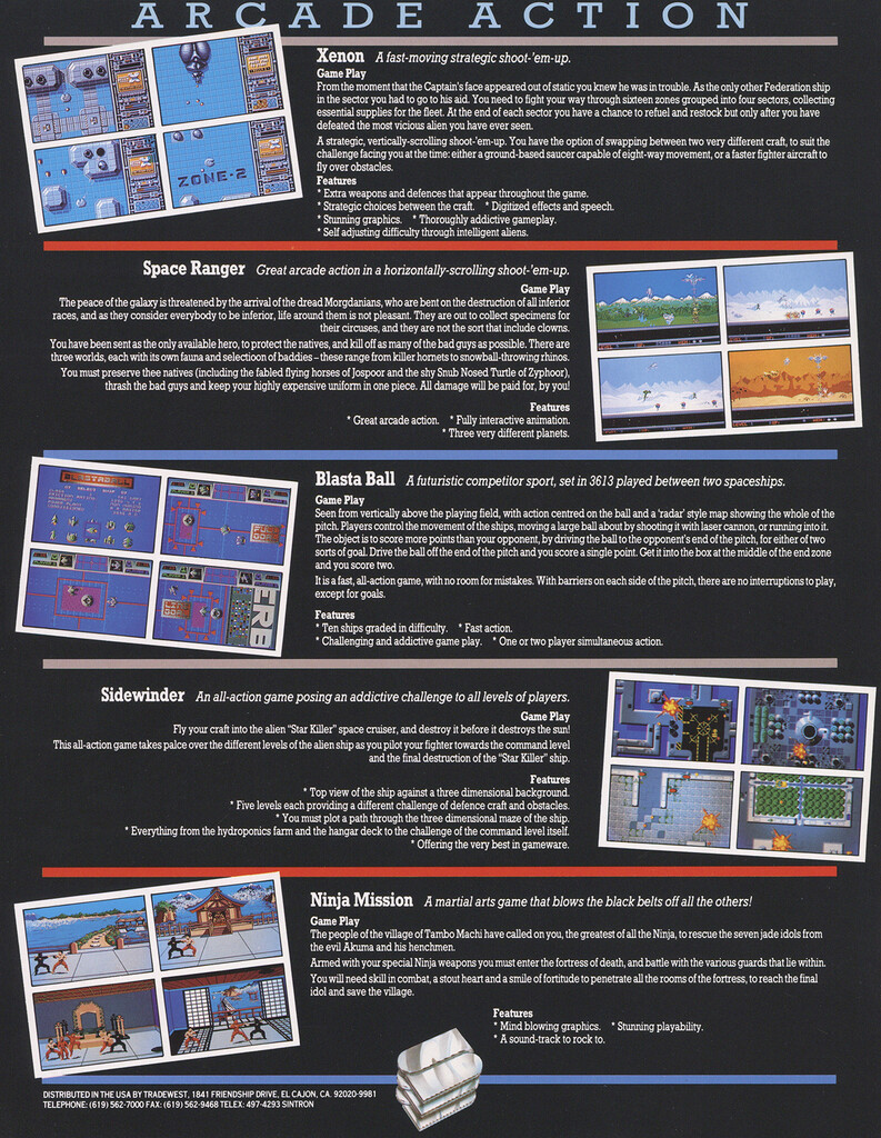 Shows Xenon, Space Ranger, Blasta Ball, Sidewinder and Ninja Mission