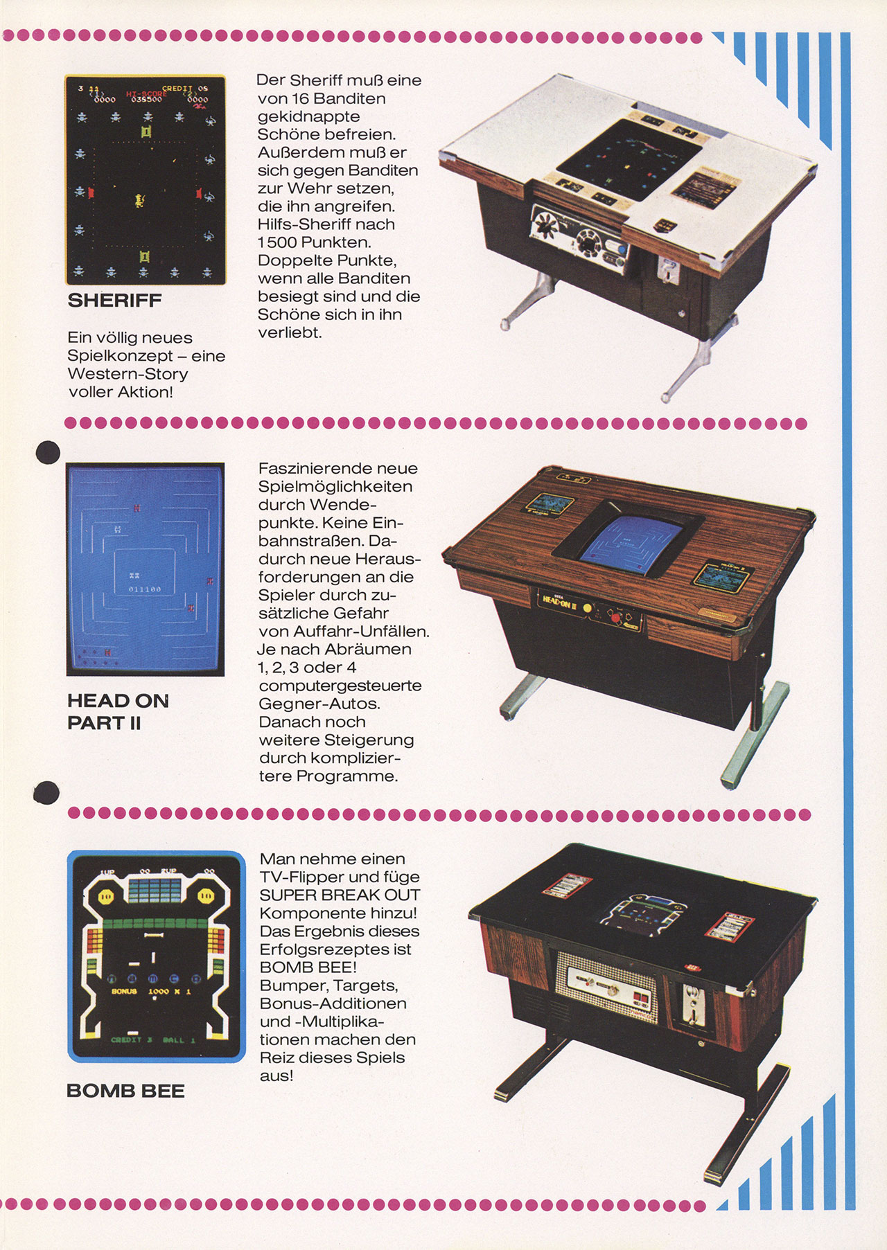 - Shows Bomb Bee, Doppel-Spiel (Crash/Invader), Galaxian, Head On Part II, Sheriff and Space Invaders.