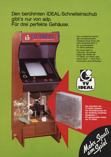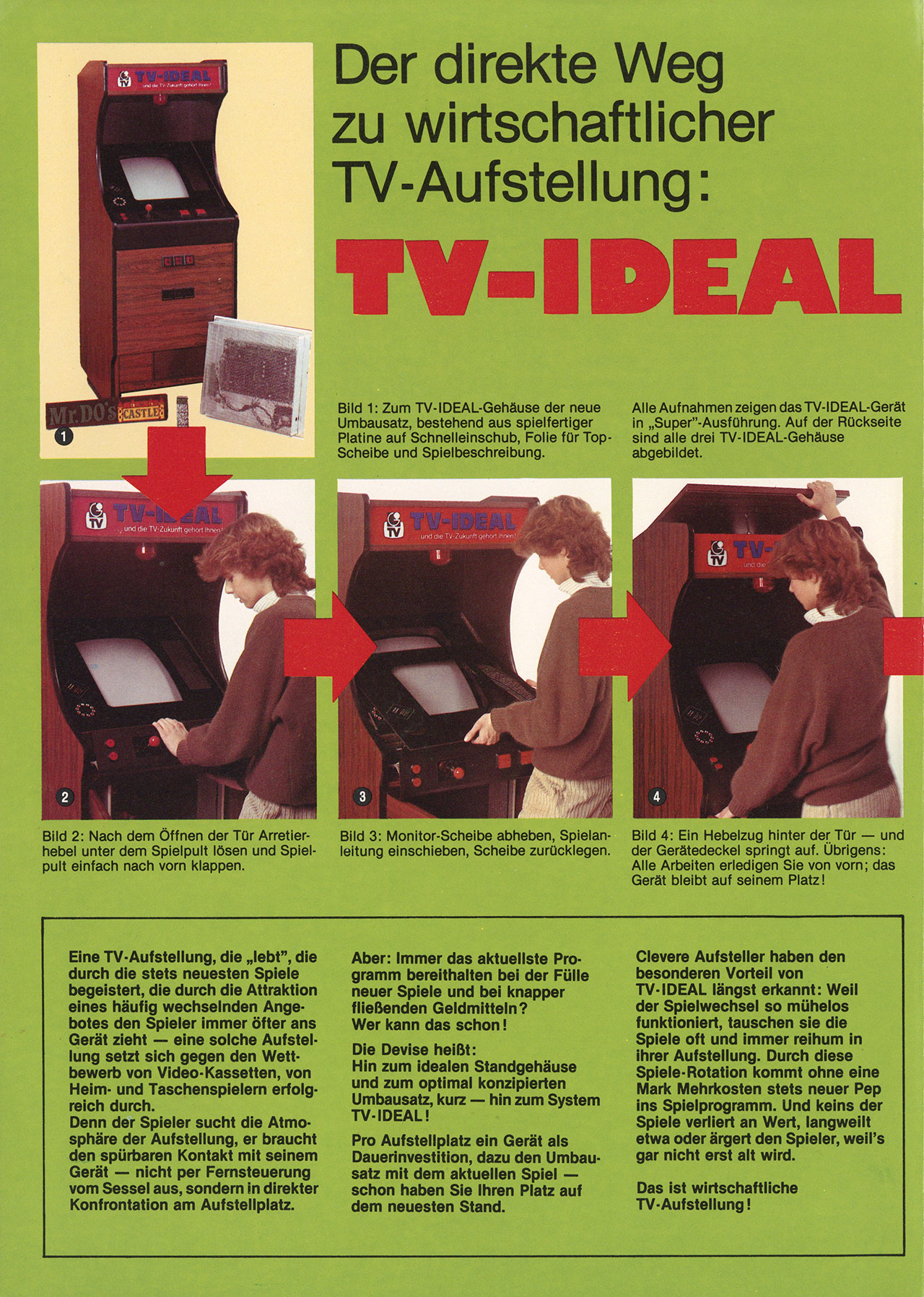 TV Ideal Video Game Cabinet Kit (1983) UncategorizedAugust 2021July 2023 Dan Hower Year Released 1983 Developed by ADP Automaten Published by ADP Automaten More Information Shows Arabian by Sun Electronics and Mr. Do!’s Castle by Universal Printed Text German Paper Size A4 Date Posted Aug 8, 2021 Views 1