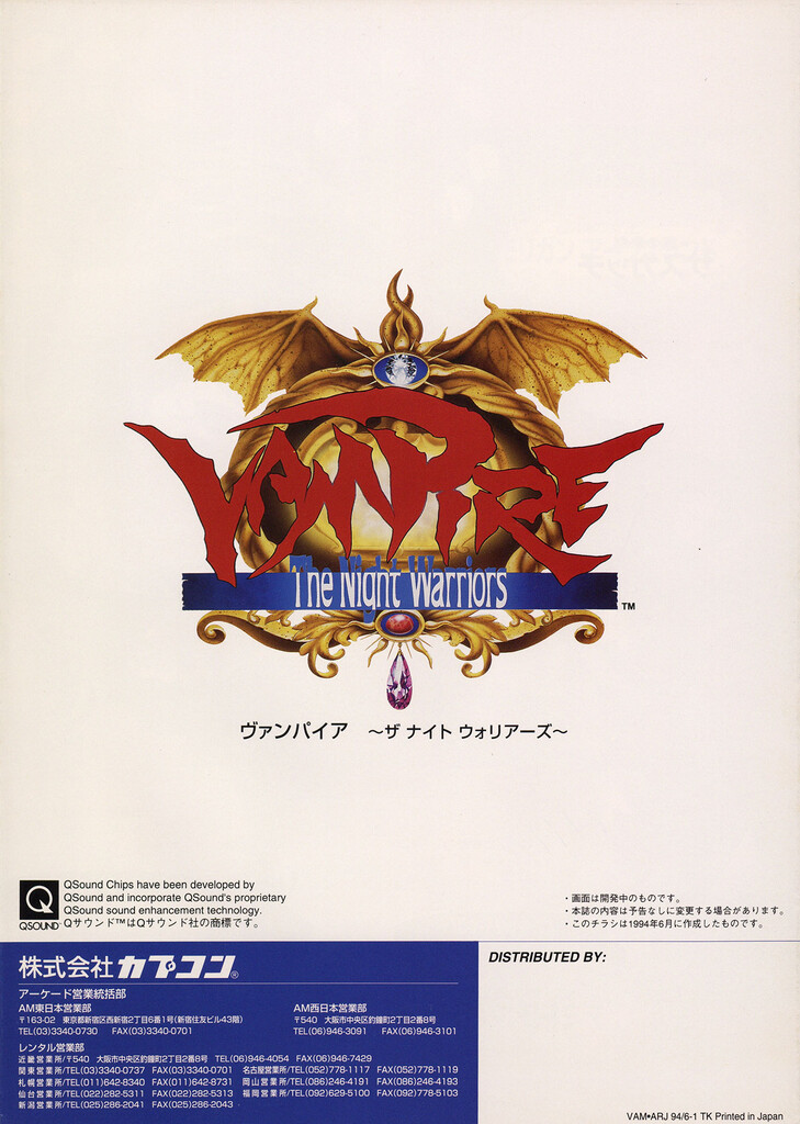 Vampire: The Night Warriors UncategorizedNovember 2023February 2025 Dan Hower Year Released 1994 Developed by Capcom Published by Capcom More Information Also known as Darkstalkers: The Night Warriors. Printed Text Japanese Paper Size A4 Date Posted Nov 30, 2023 Views 5