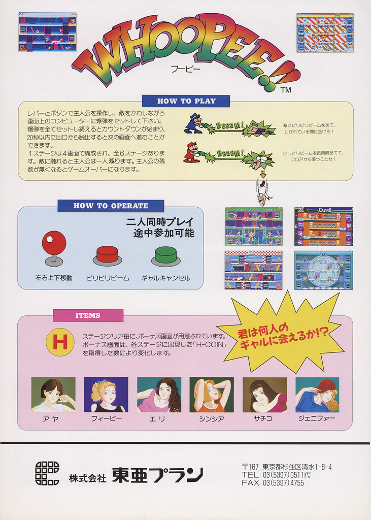 Whoopee! UncategorizedAugust 2021July 2023 Dan Hower Year Released 1991 Developed by Toaplan Published by Toaplan More Information Printed Text Japanese Paper Size A4 Date Posted Aug 7, 2021 Views 5